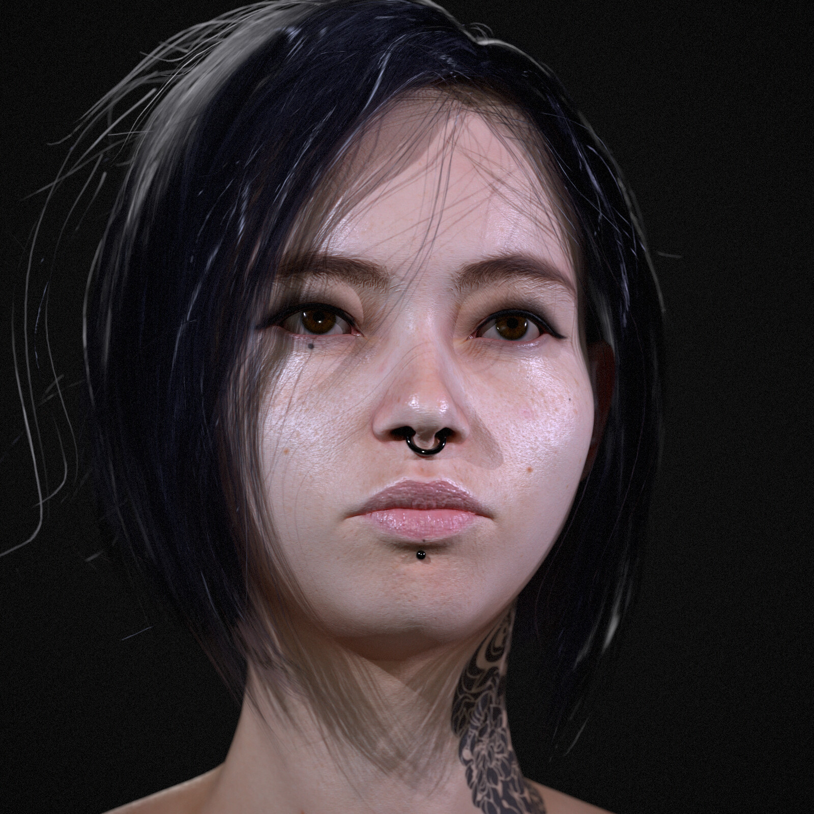 This is a game-ready realistic portrait, focused on capturing lifelike details and expression. I used hair cards for the hairstyle to keep it optimized for real-time engines. Sculpted in ZBrush, textured in Substance 3D Painter, and rendered in Marmoset Toolbag.